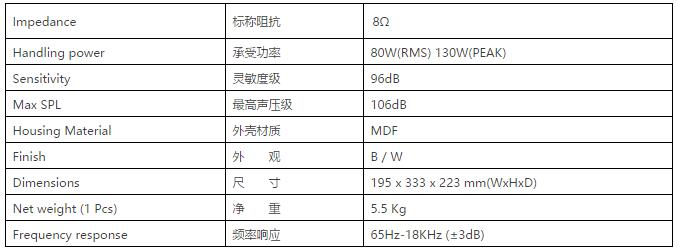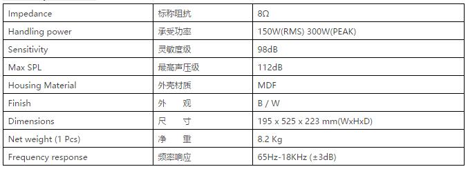 高雅华贵的磨砂漆表面处理;完全匹配于各种会议室、教室、车站大堂、百货公司、家居影视厅等应用场景;外型设计流畅,并采用特制的带内部支撑和加强效果的中密度纤维板(MDF),提升音箱美观度和整体声音效果的稳定性。